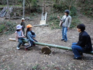 里山で作ったものを見せたりしました!