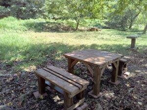 また、原っぱに置くための木の机と椅子を寄贈いただきました。