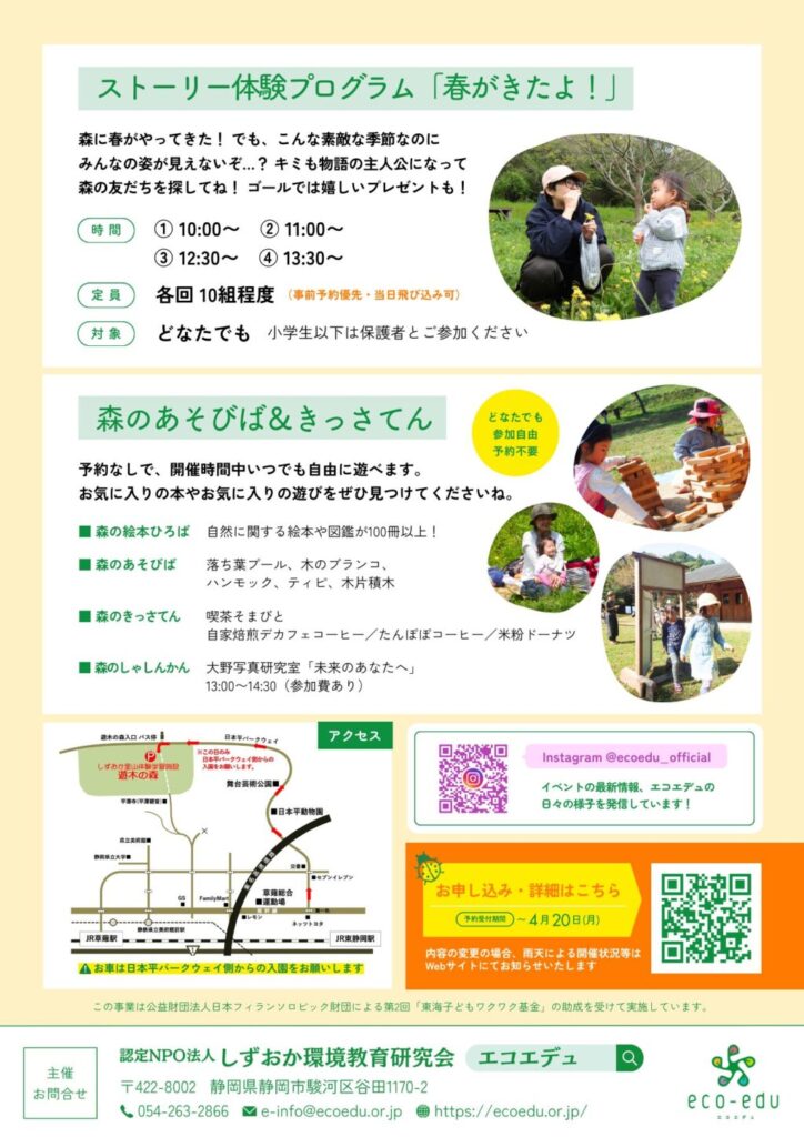 親子で楽しむ、春のストーリー体験と森のあそびば。